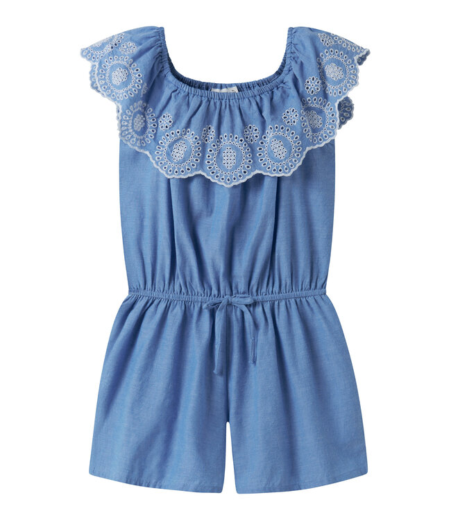 leuke jumpsuit uit 100% katoen en leuke Broderie Anglaise bovenaan.
