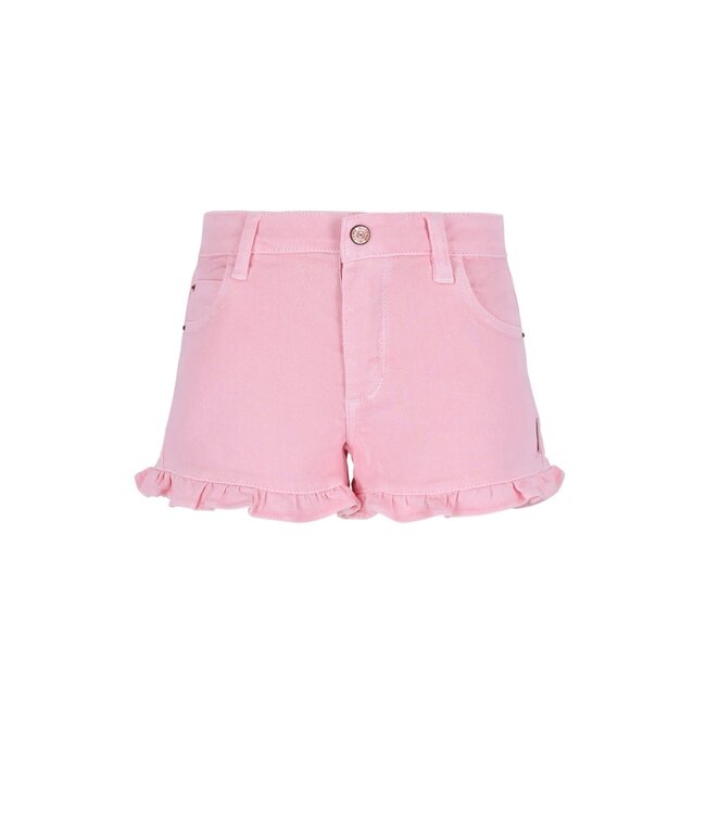 Super leuke roze short in jeans stof. Deze heeft verkleinknoopjes in de taille boort.