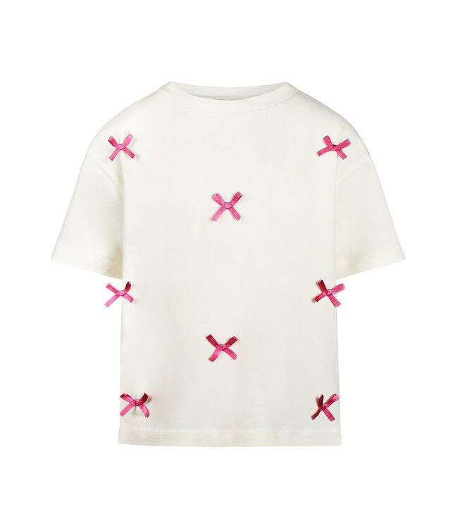 katoenen t-shirt, loose fit model met strikjes fushia kleur