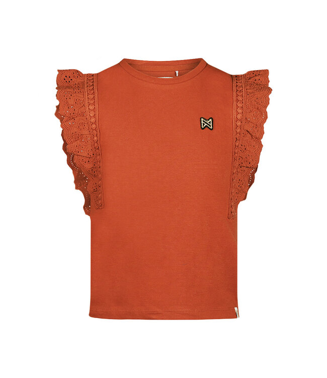 Katoenen t-shirt met prachtige kant details op de schouder boorden